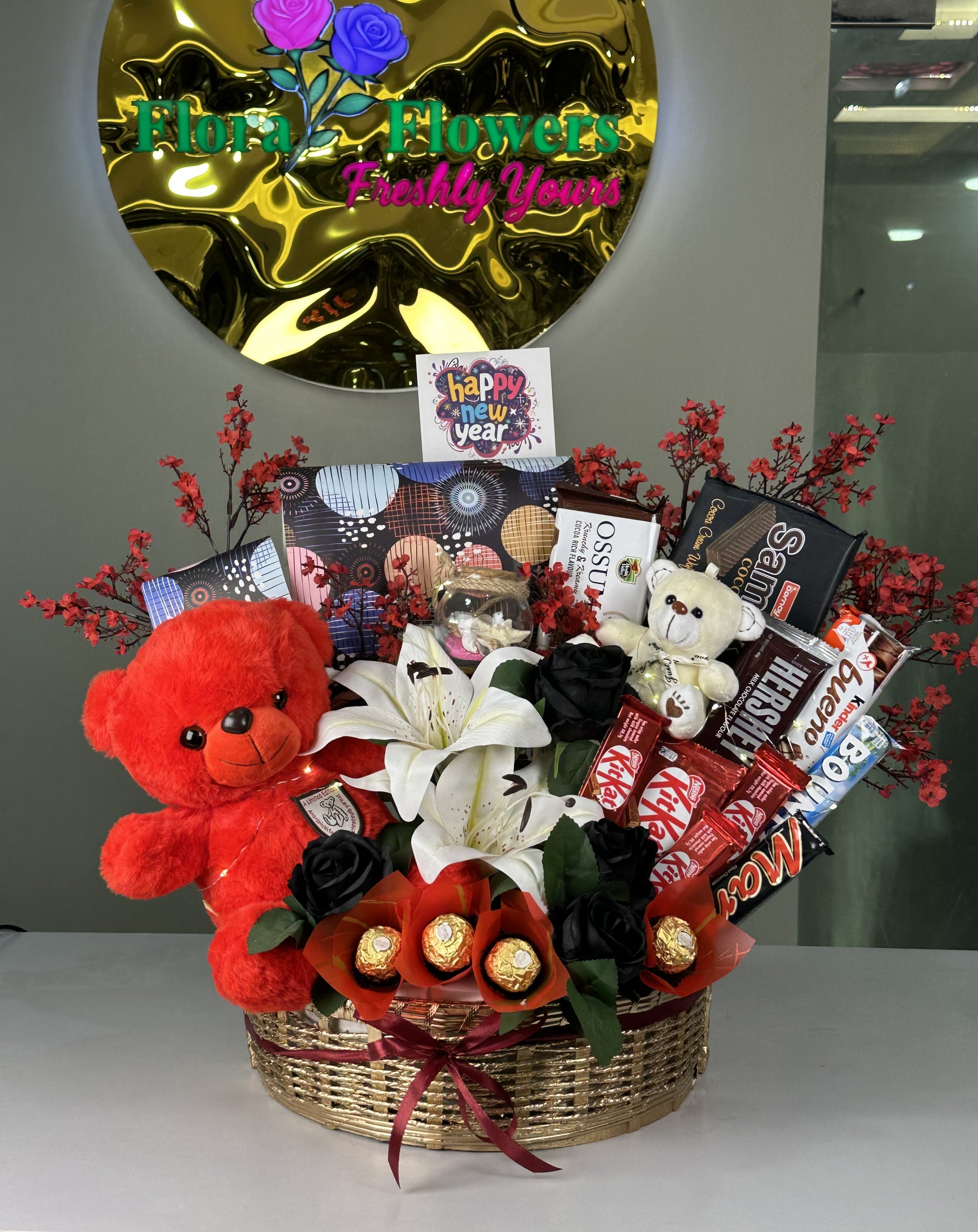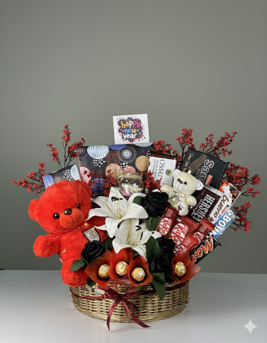 Send luxury gift baskets to your Loved One's & Pakistan with our Elegant Cheer, a beautifully curated festive hamper featuring refined florals, premium chocolates, and charming keepsakes — perfect for celebrating special moments with style and warmth.